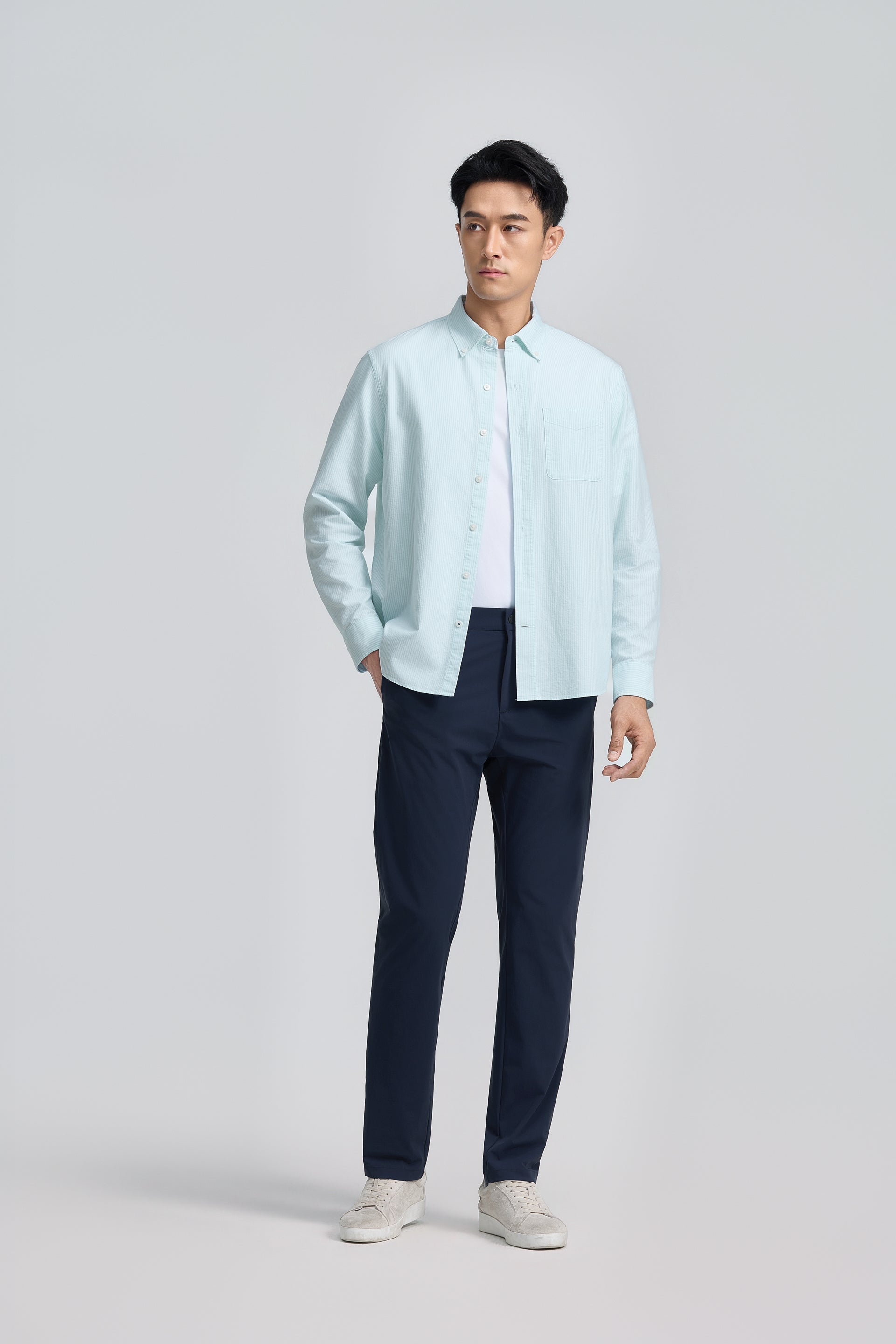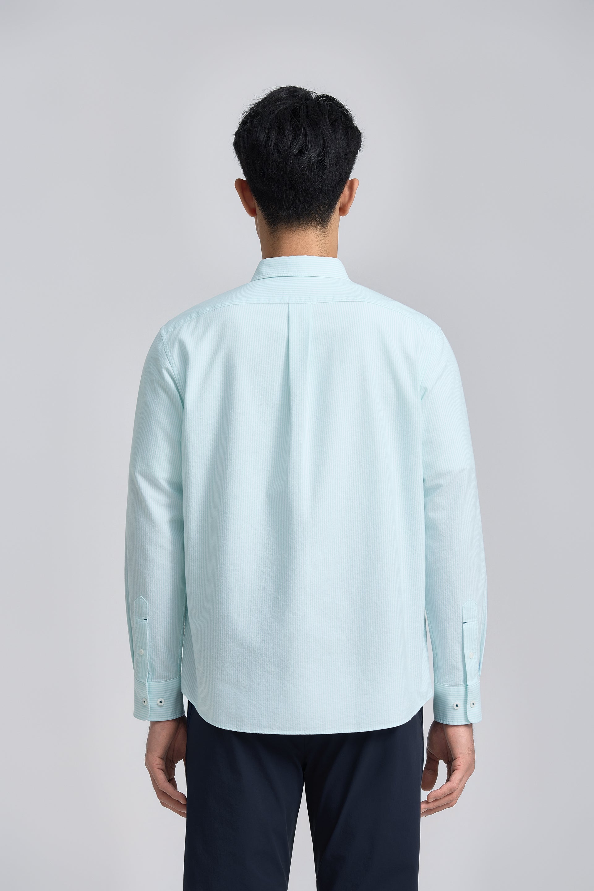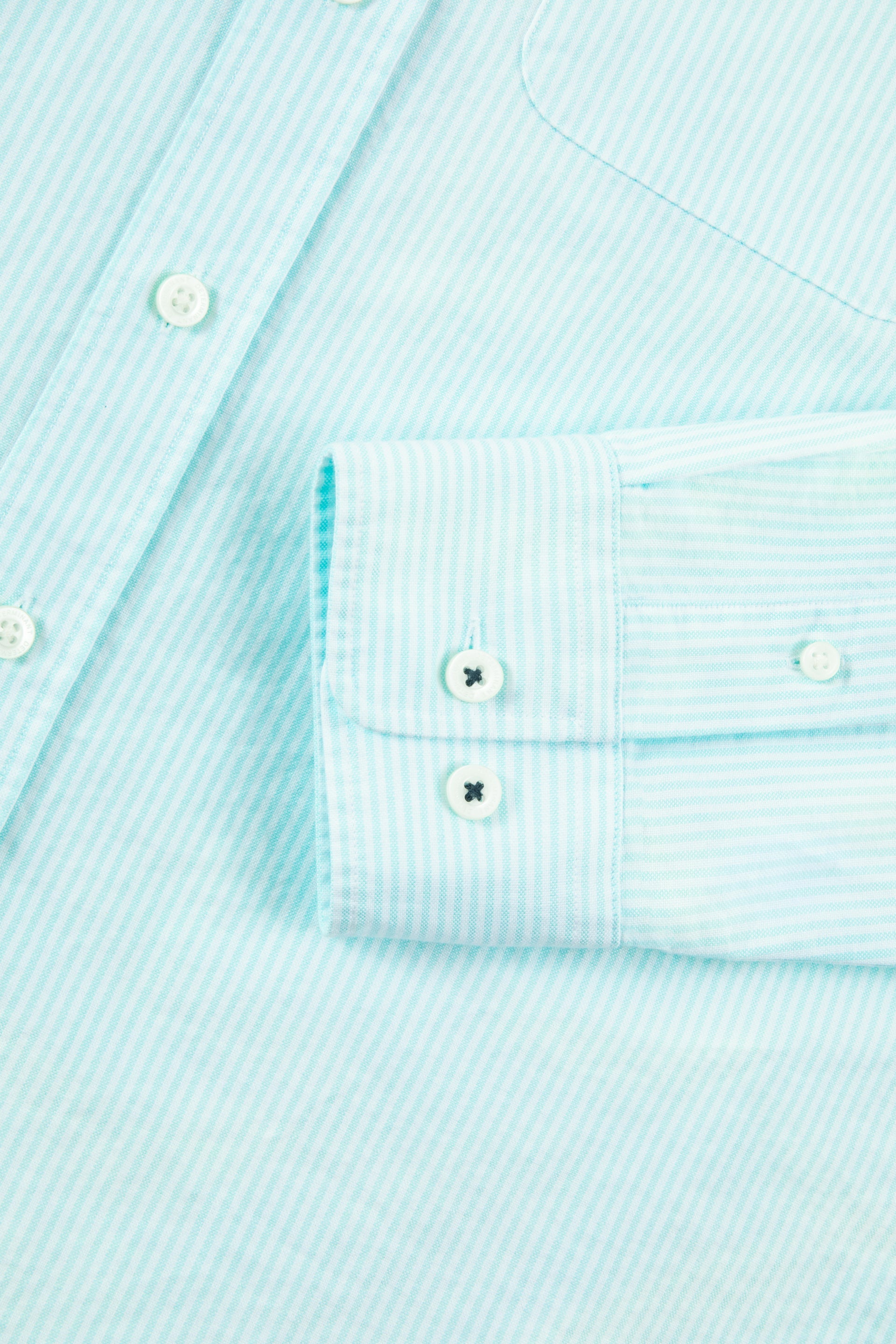 Soft Oxford Button-Down Casual Shirt | Iced Aqua Stripes 25475N