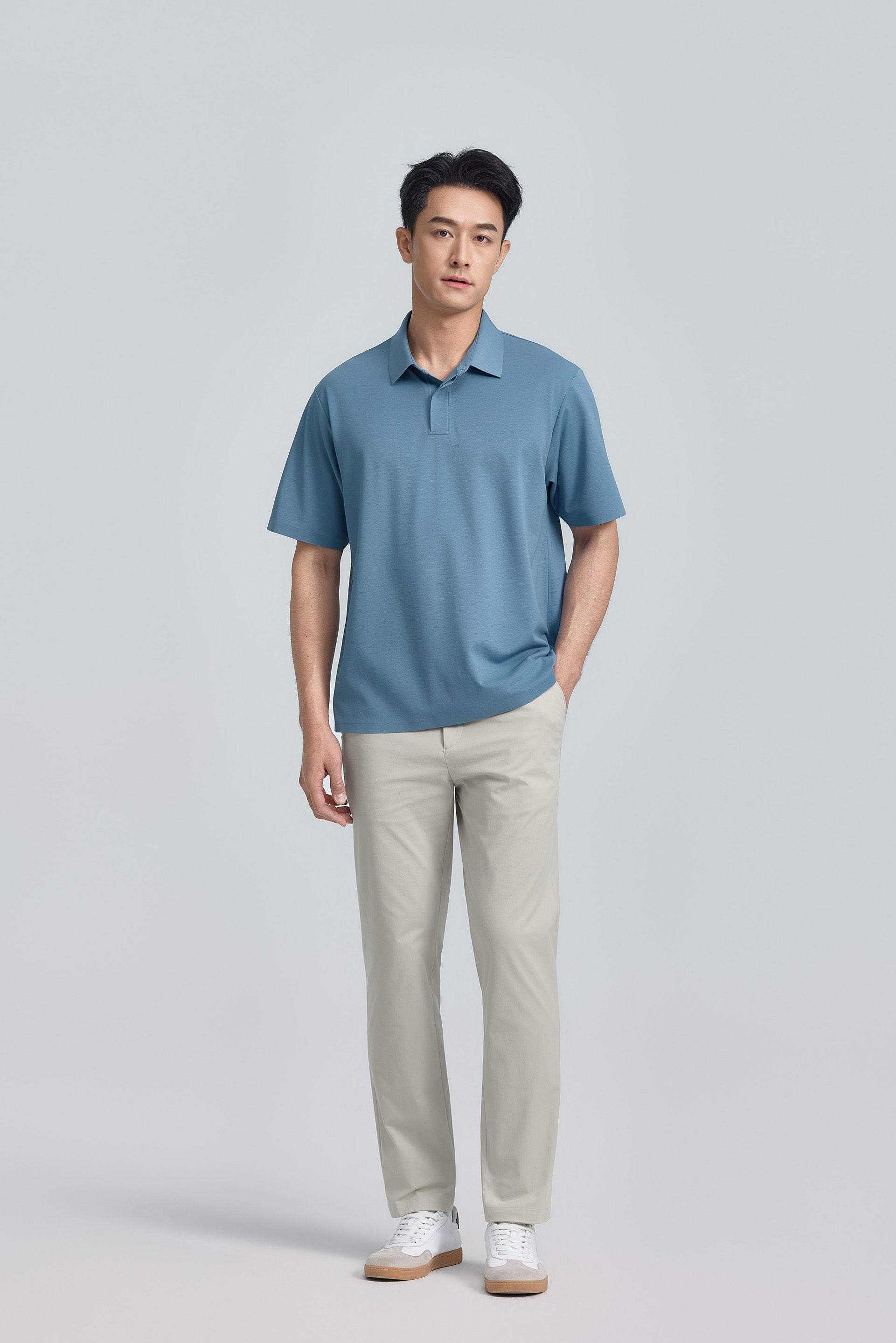 This polo is crafted from a high-density stretch piqué knit that delivers a subtle luster and a structured silhouette. Finished with our patented VISDRY™ technology, the fabric repels moisture on the outside while absorbing sweat on the inside—helping to hide visible sweat stains and keep you dry, comfortable, and confident throughout the day.