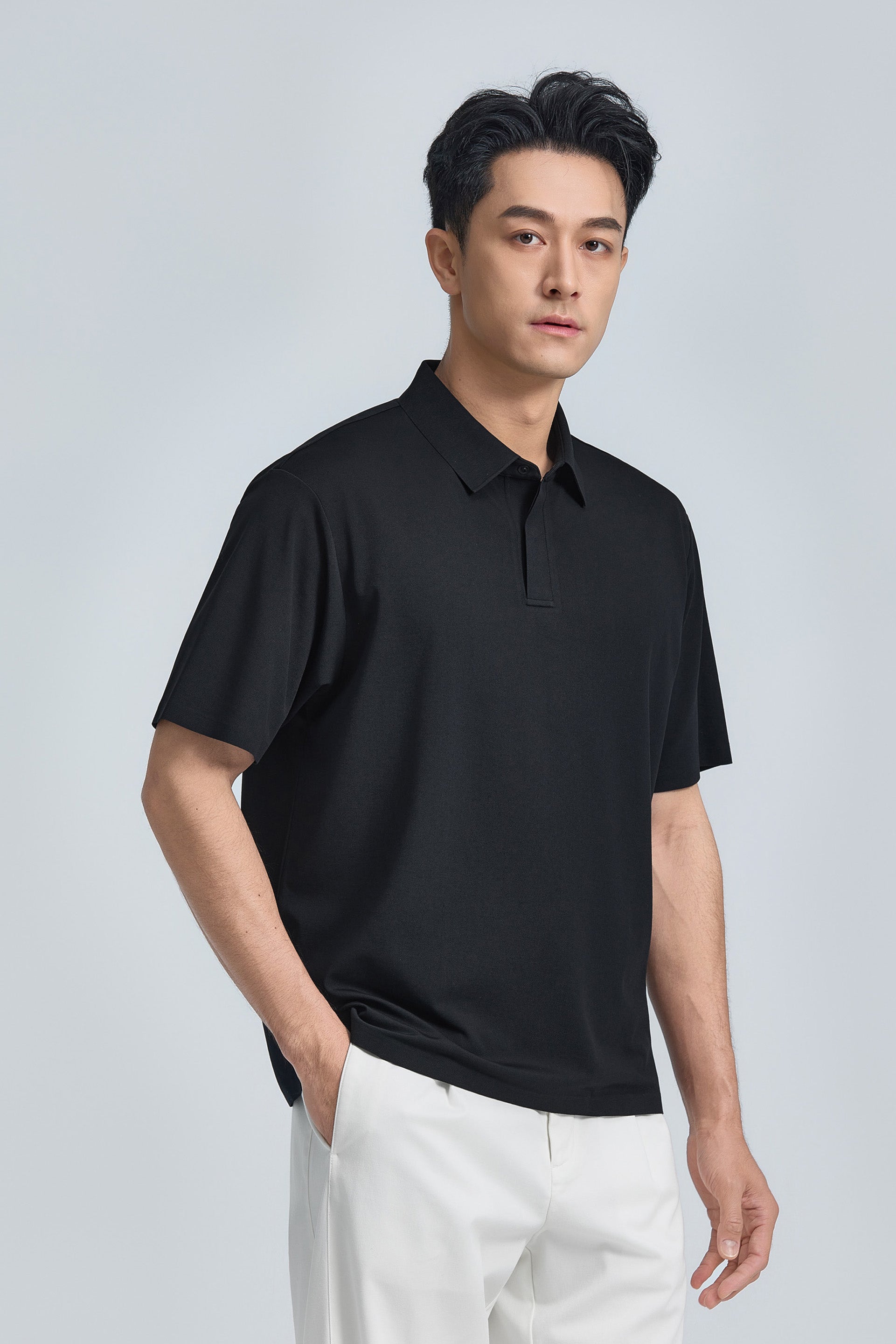 VISDRY™ Bonded Concealed Placket Pique Polo | Black BKFD01